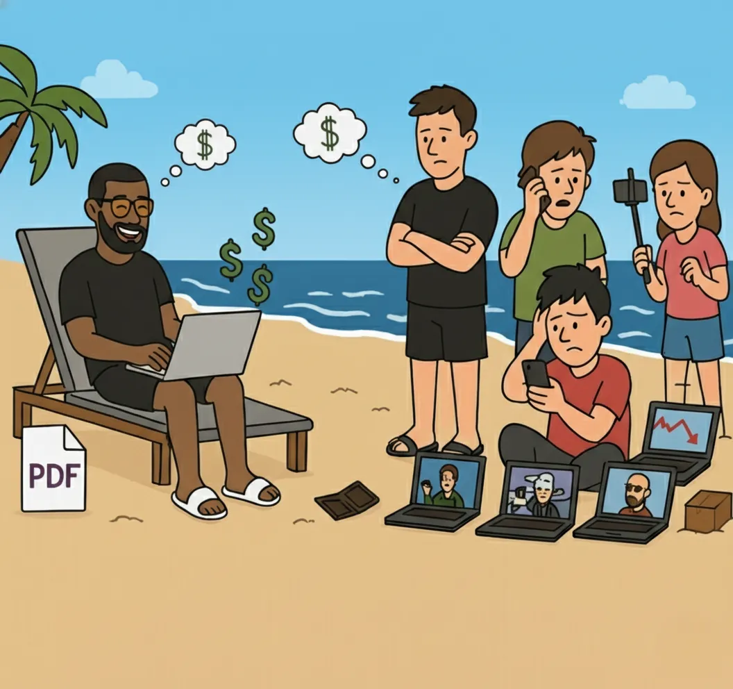 100%. Unlike most course creators who stopped doing what they teach years ago, I actively create and sell PDFs every day. I'm in the trenches testing new niches, running ads, and optimizing campaigns. That's why this framework works - it's not based on outdated strategies from 2019, but on what's working right now in 2025.