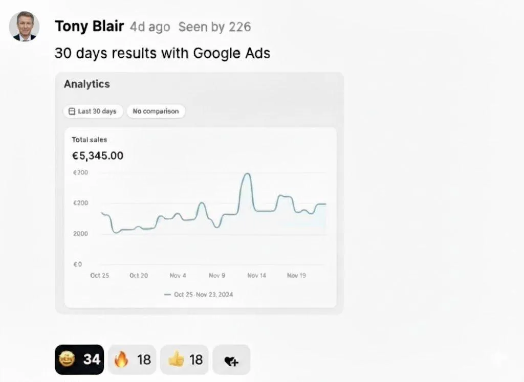 Many students see their first sales within 24-48 hours of launching their ads. Building to consistent $100+/day typically takes 2-4 weeks of testing and optimization. Scaling to $3,500/week usually takes 1-3 months of consistent implementation. The beauty of this framework is that you get market feedback almost immediately - unlike other business models where you might invest months before knowing if you have a winner.